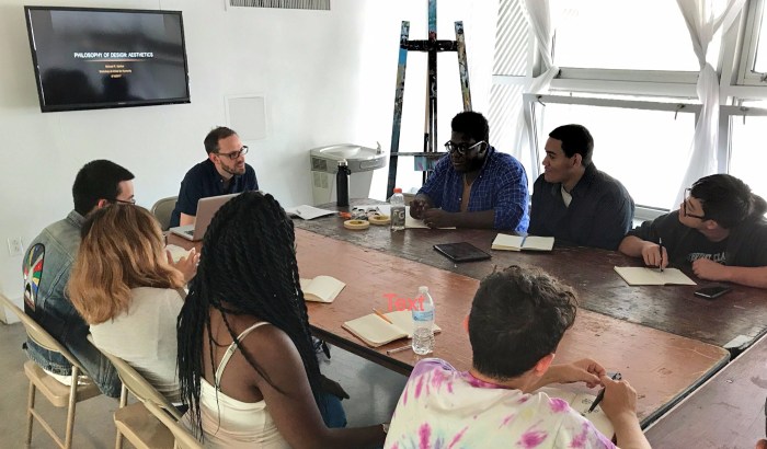 On August 16, 2017, I led a workshop called Philosophy of Design: Aesthetics to the Graphic Design Studio at Artist for Humanity. First of all, if you don't know about them, you will be inspired to learn more. They employ about 150 teenagers to learn and make art. They all begin in the painting studio … Continue reading Aesthetics for Teens!